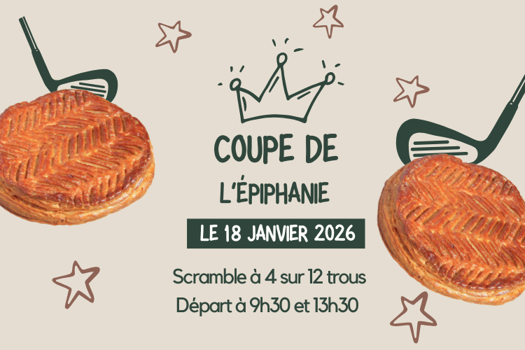 Le Dimanche 18 Janvier 2026, nous vous proposons la coupe de l'épiphanie, compétition en scramble par équipe de 4 sur 12 trous avec 2 départs à 9h30 et 13h30.