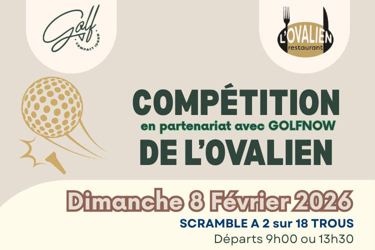 Rendez-vous le Dimanche 8 Février, pour participer à la Compétition de l'Ovalien, partenaire de notre école de golf et en association avec GOLFNOW, notre nouveau logiciel de réservation !